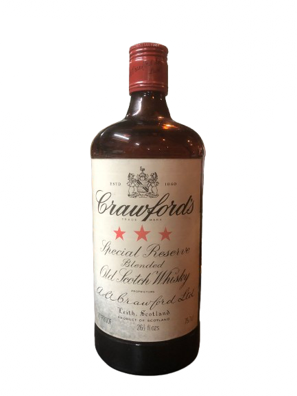 An old bottle of Crawford's Special Reserve blended whisky. This appears to have been bottled during the 1970s, the bottle itself is much dumpier than some of the more recent releases of Crawford's.